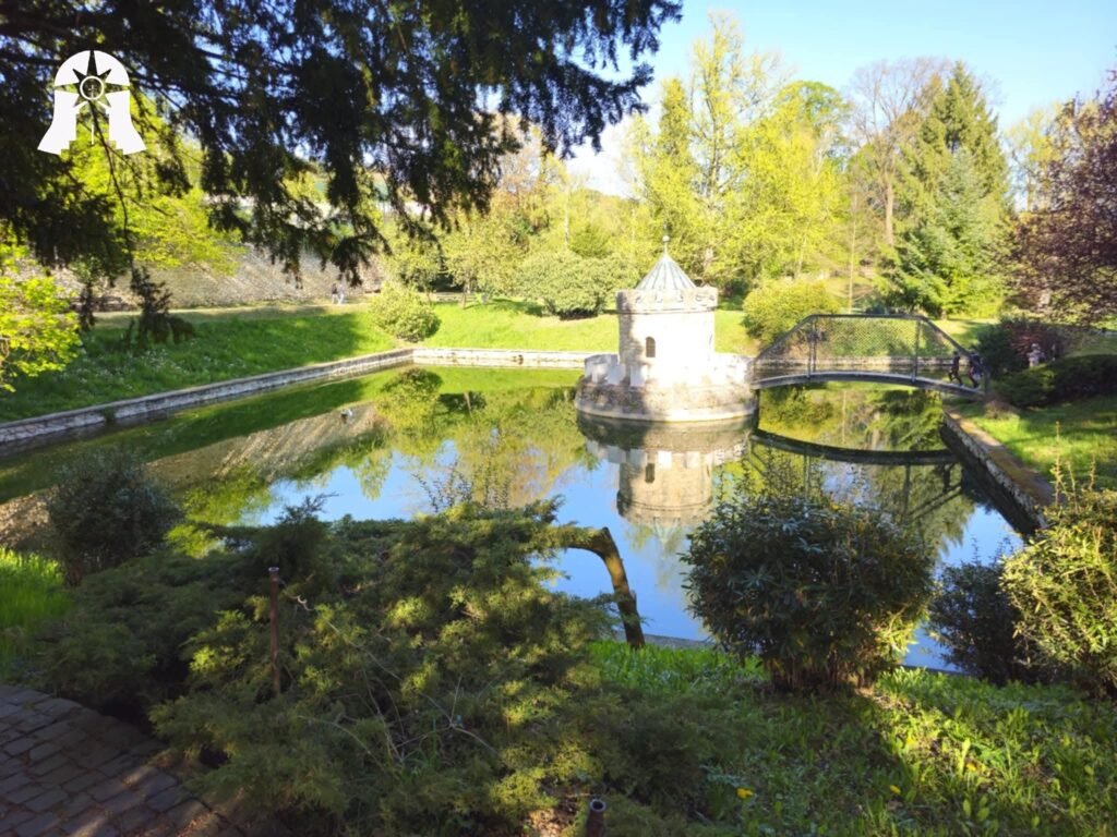 كما تحيط بها حدائق جميلة وبحيرة صغيرة تضيف لمسة ساحرة للمكان.